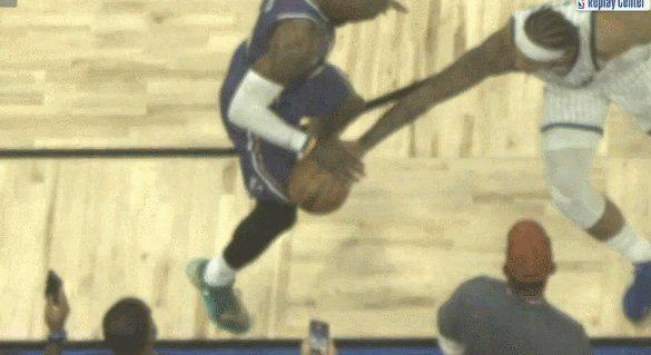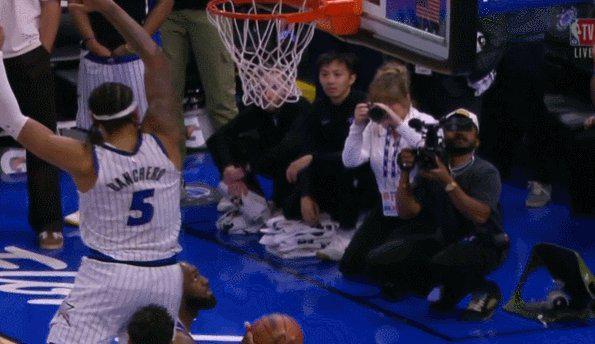 5.5秒领先2分握有球权,魔术赢球形势一片大好,但他们出现了关键的边线球失误,班凯罗被詹姆斯切球,裁判将球权判给湖人。魔术选择用最后一次暂停进行挑战,但裁判经过漫长的录像回放后依然无法找到改判证据,湖人获得了4.7秒绝杀的机会。