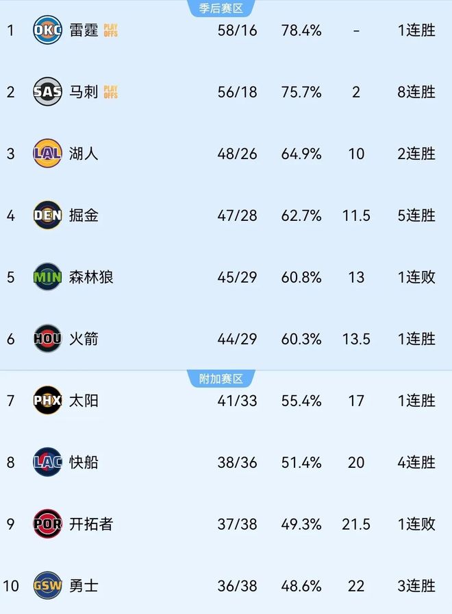 值得一提的是,马刺当前领先湖人多达8个胜场,以及双方对局(马刺本赛季3-1湖人)占优情况下,从而正式锁定西部前二,紫金军团就此无缘西部第二位置,目前当务之急变成保住西部第三,现在只领先第四的掘金1.5个胜场。