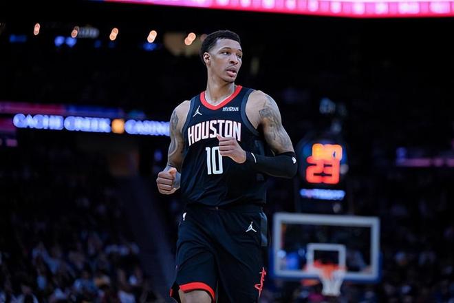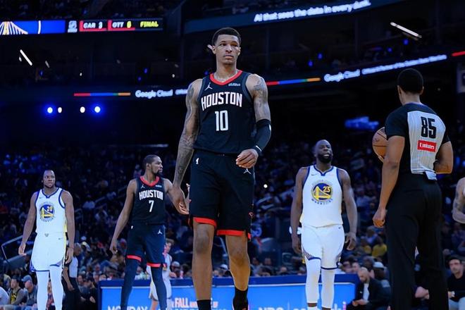 本场比赛中,火箭的先发锋线大将小贾巴里-史密斯(Jabari Smith Jr.)的表现还是相当不错的。史密斯全场出场31分37秒,投篮12中9,三分线外7中5,得到了23分9篮板1助攻的准两双数据,还有2次失误和4次犯规,正负值也是达到了全场最高的+15。史密斯在进攻端展现出了自己应有的外线投射能力,在出手次数不多的情况下拿下了大量的分数,证明了自己在进攻端的实力。不仅如此,史密斯在防守端的表现也算是不错的,他也是能够起到很好的防守效果,而且他在篮板保护方面的表现也是值得肯定的。史密斯在本场比赛中的表现相当不错,展现出了一名3D类型锋线球员的水准,他在场上时球队的局面也是一片大好,这也为球队的胜利做出了巨大的贡献。
